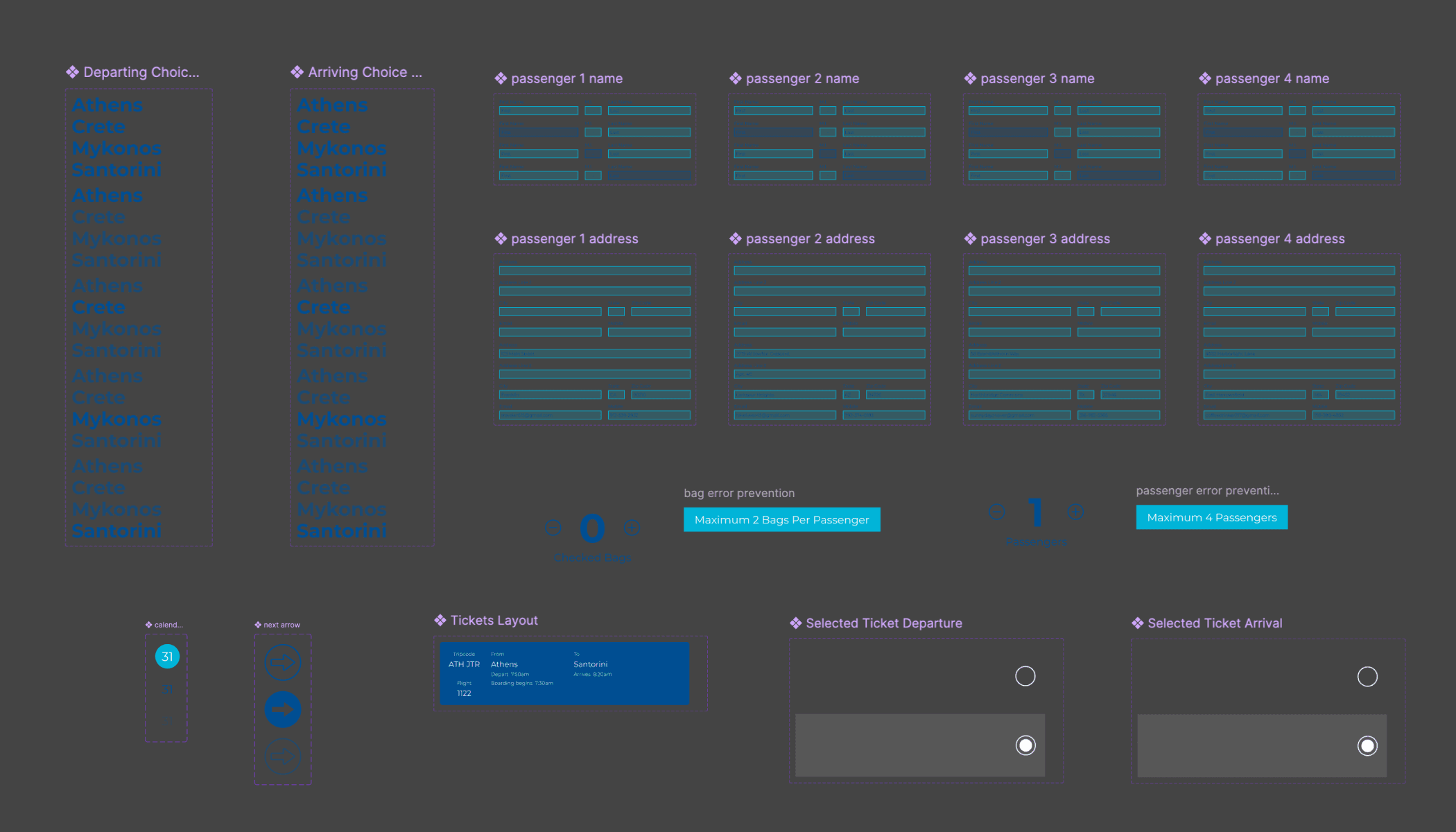 To support consistency and scalability across Aether Airline’s digital products, I created a design system grounded in the brand’s visual identity and UX foundations. After analyzing the interface’s UI needs, the system was designed to bring clarity, efficiency, and cohesion to the product experience.