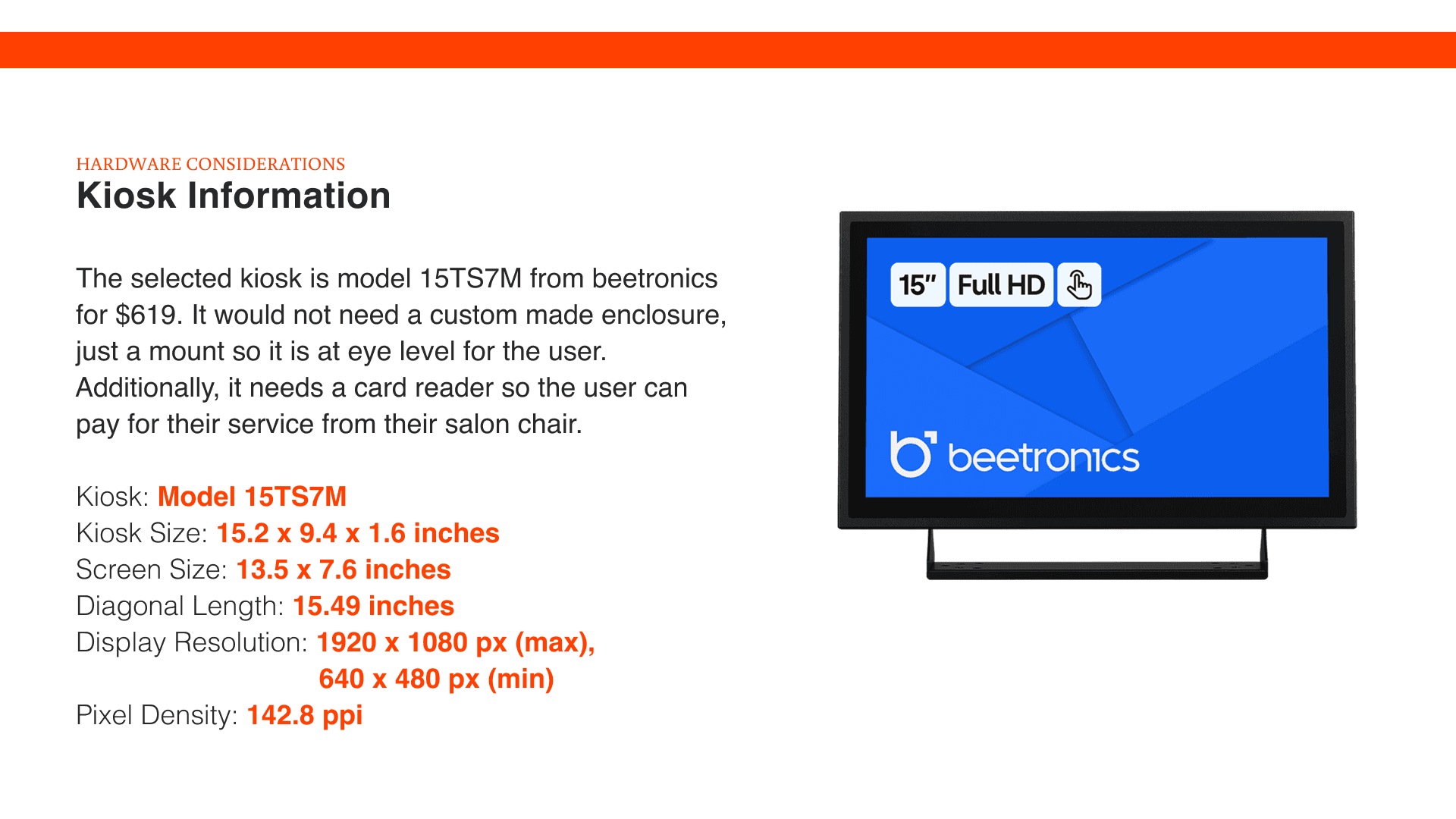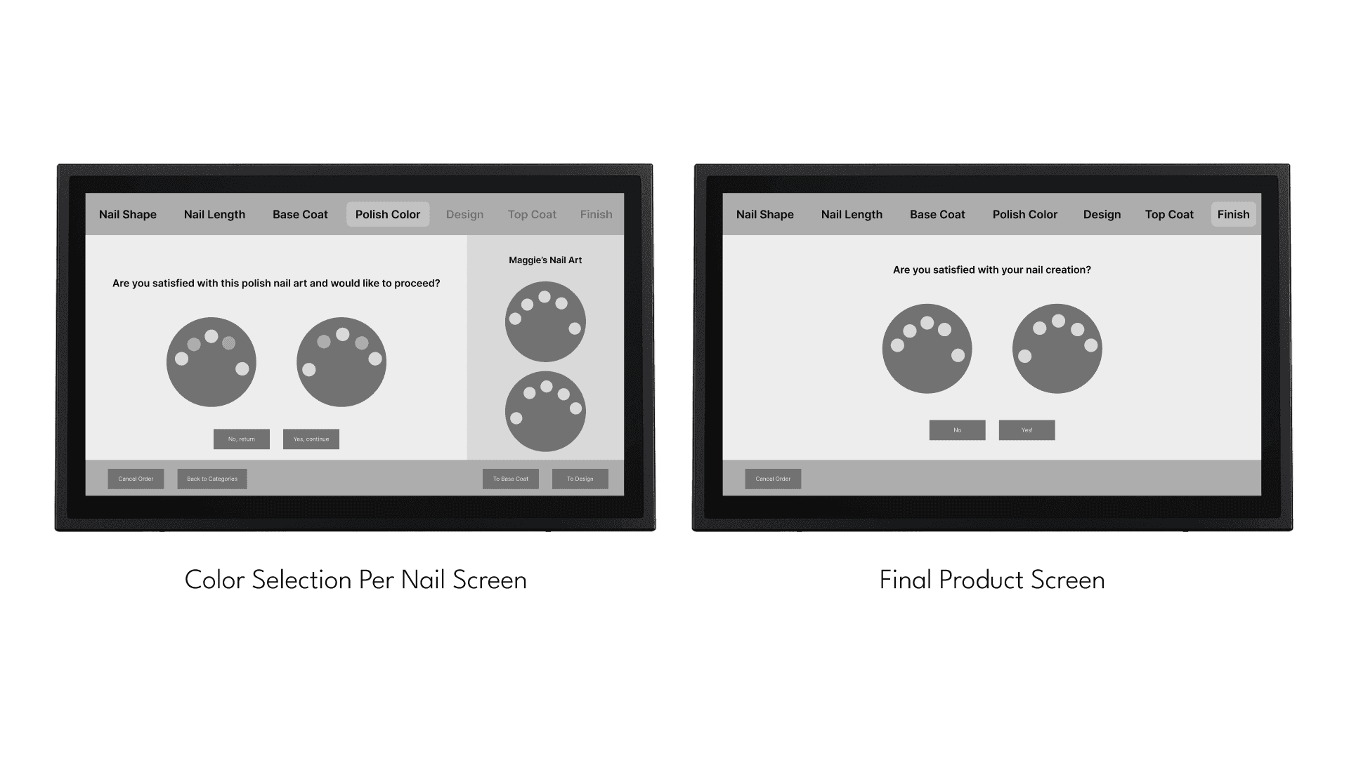 2) By creating a kiosk-based experience, I expanded how and where the service could be used, demonstrating how digital systems can increase accessibility and brand reach.