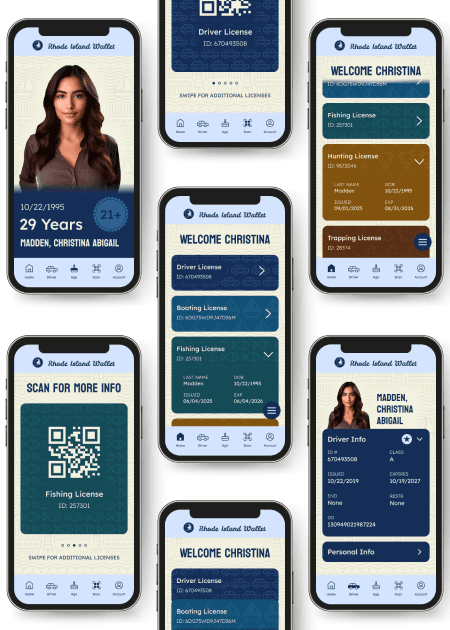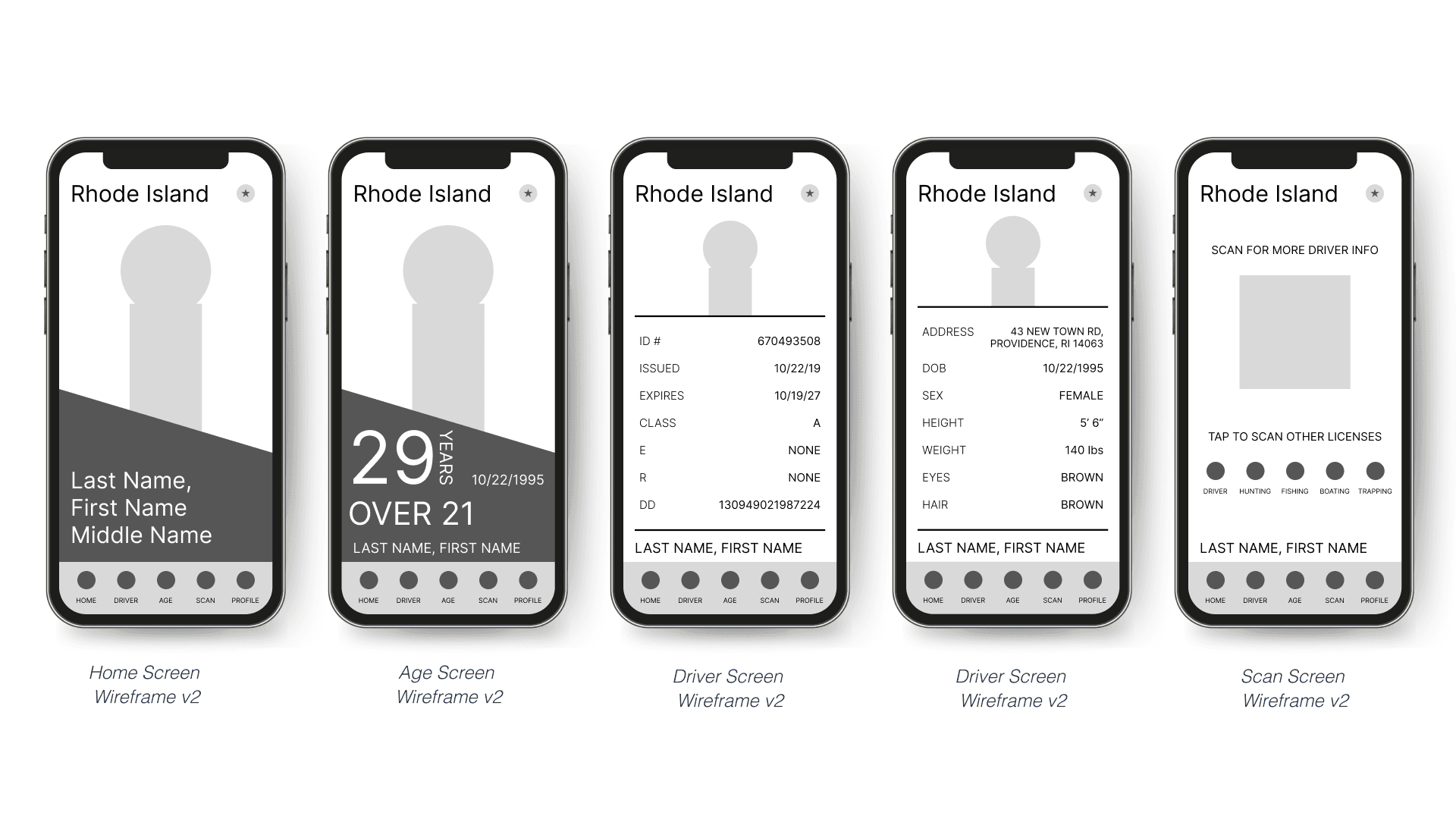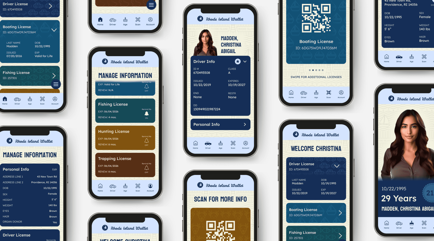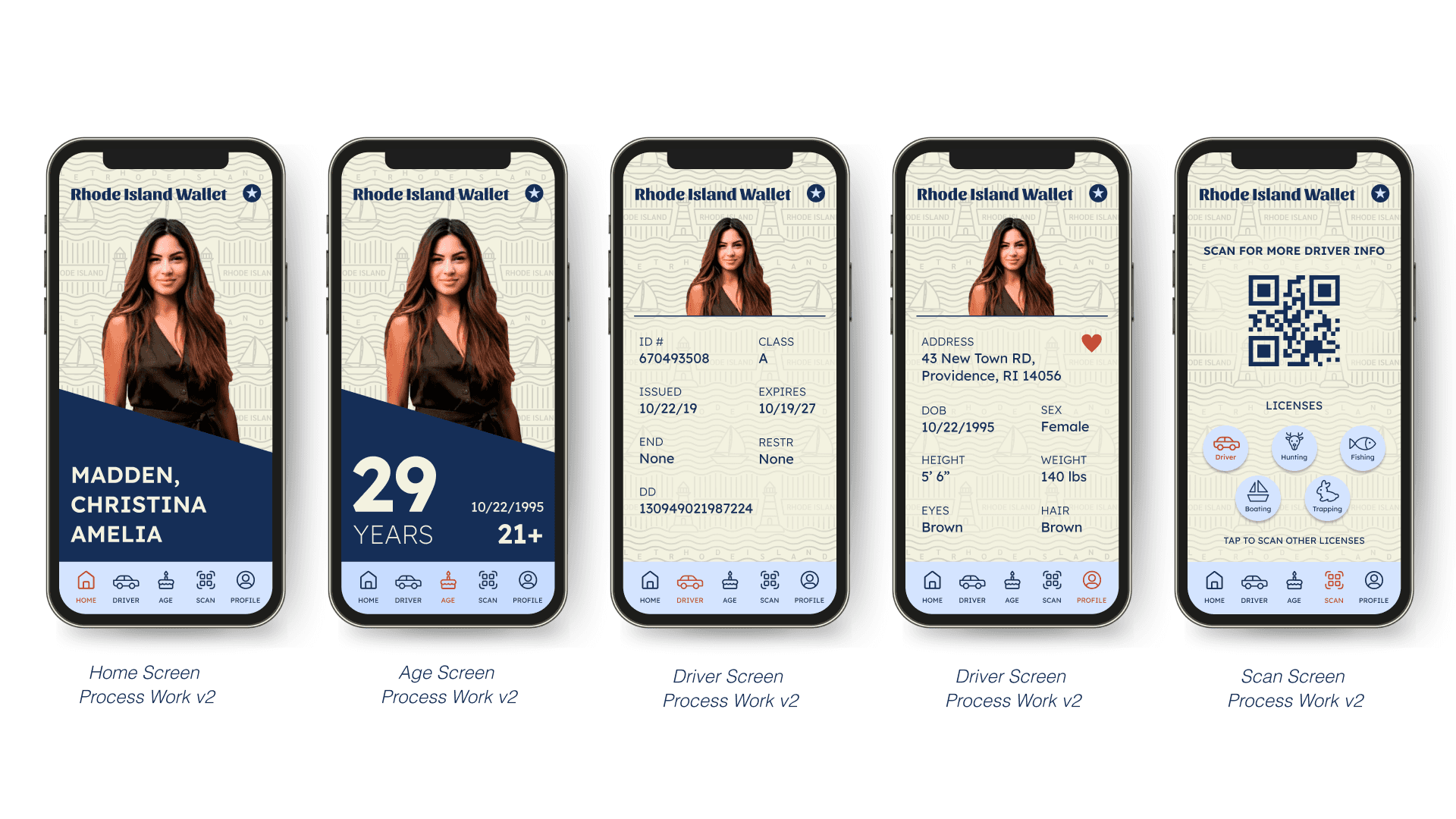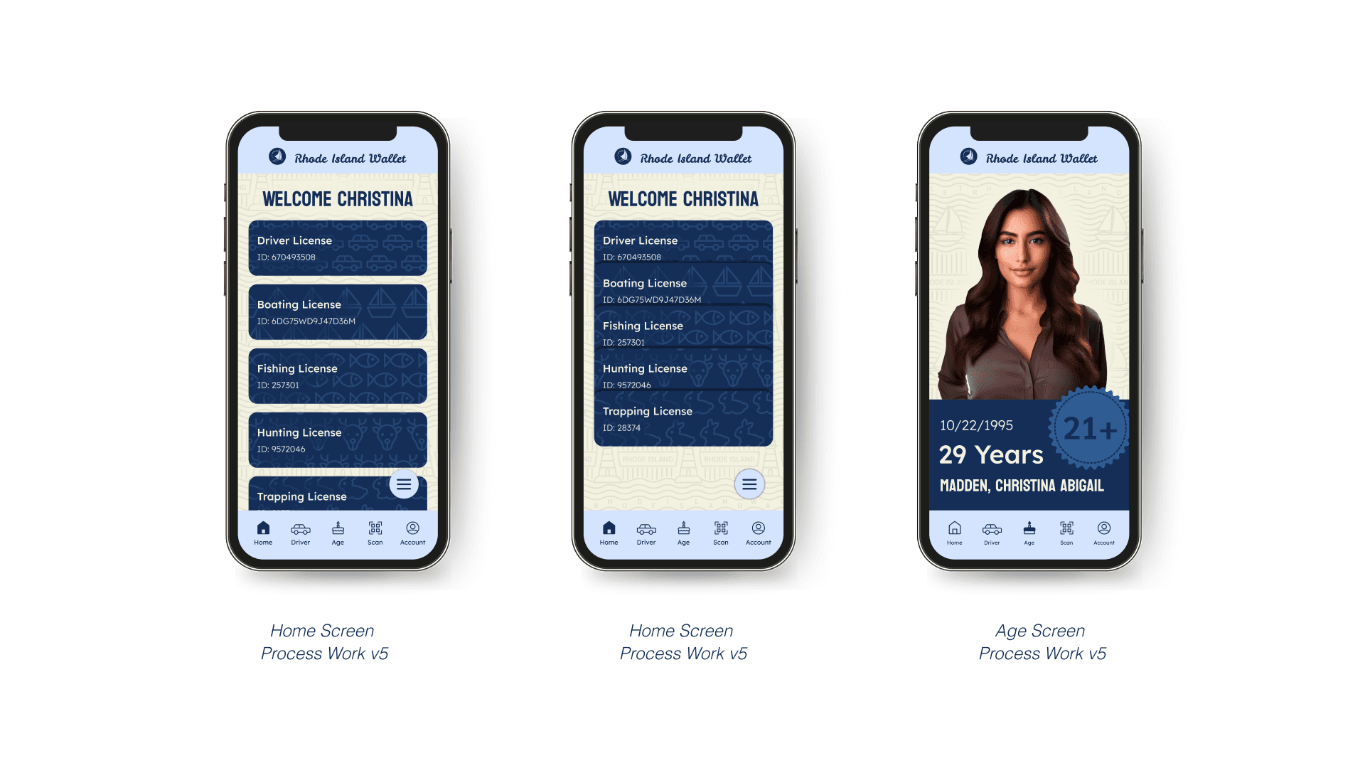 1) I designed a digital wallet app capable of housing multiple IDs in one centralized location. This allows users to easily access all of their licenses from a single interface.