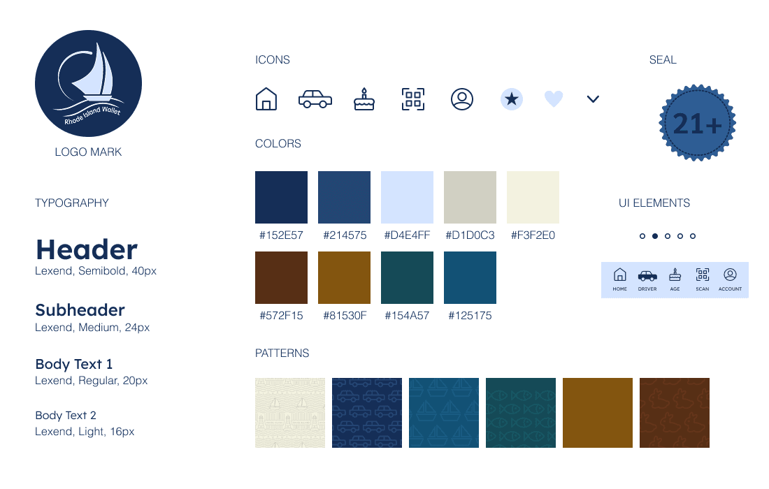 After wireframing, creating a style guide was essential to establish visual consistency and ensure design decisions aligned with the app’s structure and functionality. The style guide was inspired by the state of Rhode Island, incorporating local motifs and visual references to foster state pride and create a stronger connection with residents.
