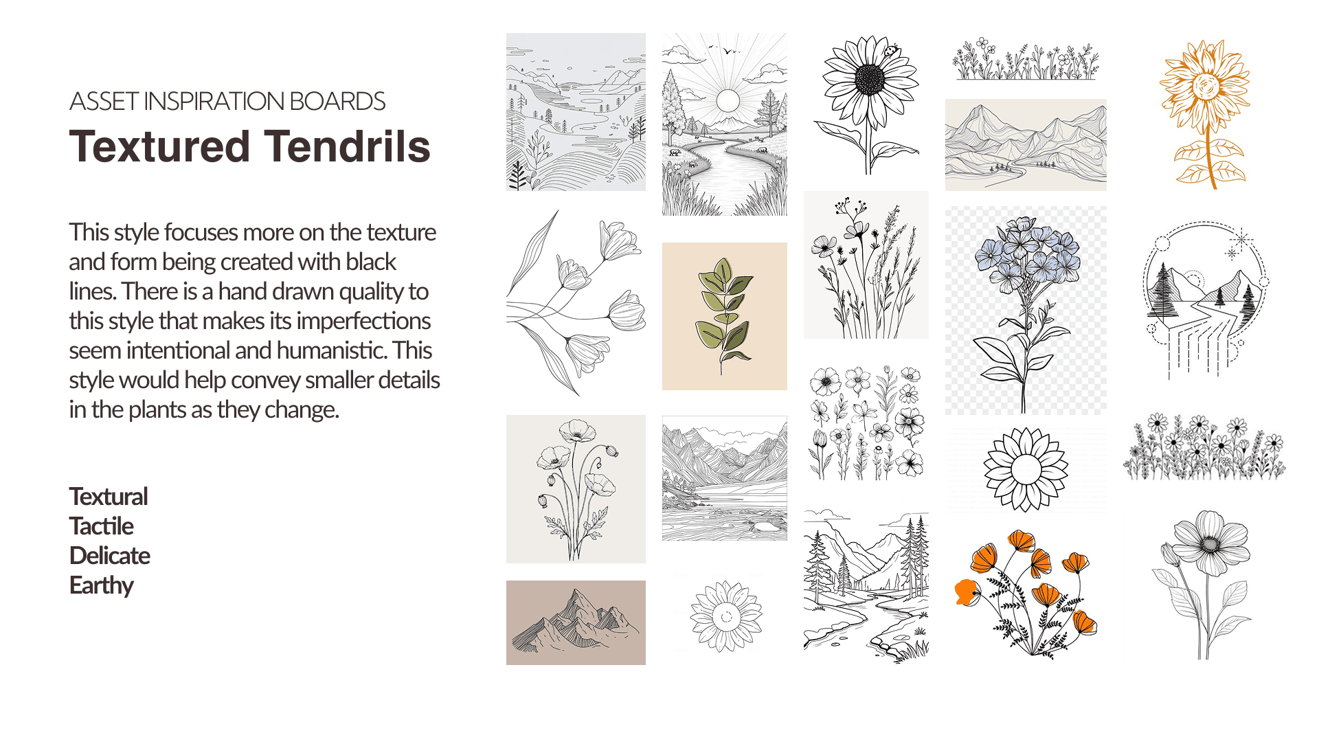 Through iteration, my composition style evolved to best support the project’s visual direction. Once finalized, I created a style guide to centralize and define all design elements.